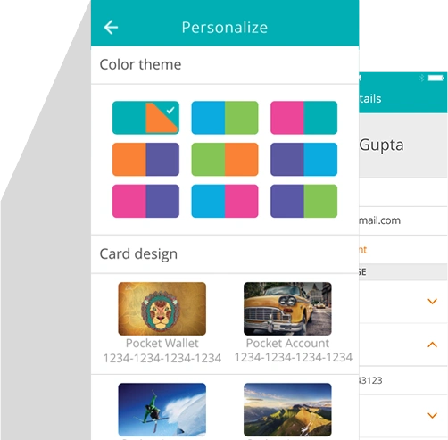 Add a touch of your personality to your Pockets Digital Bank accounts – choose an image from the options given and select your favourite colours by choosing from one of the vibrant themes.