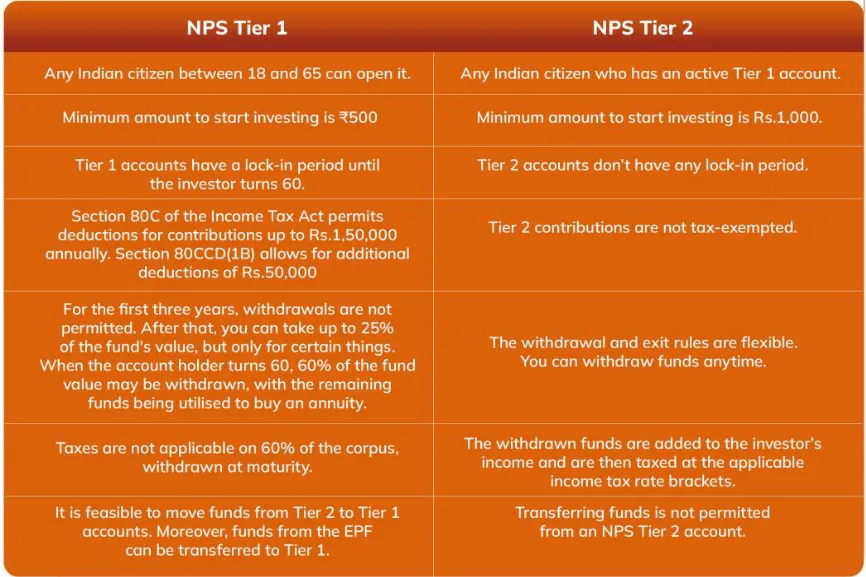 Under the NPS Account, there are two types of Accounts - NPS Tier I & Tier II account. Tier I Account is mandatory and the subscriber has the choice to opt NPS Tier II Account.
